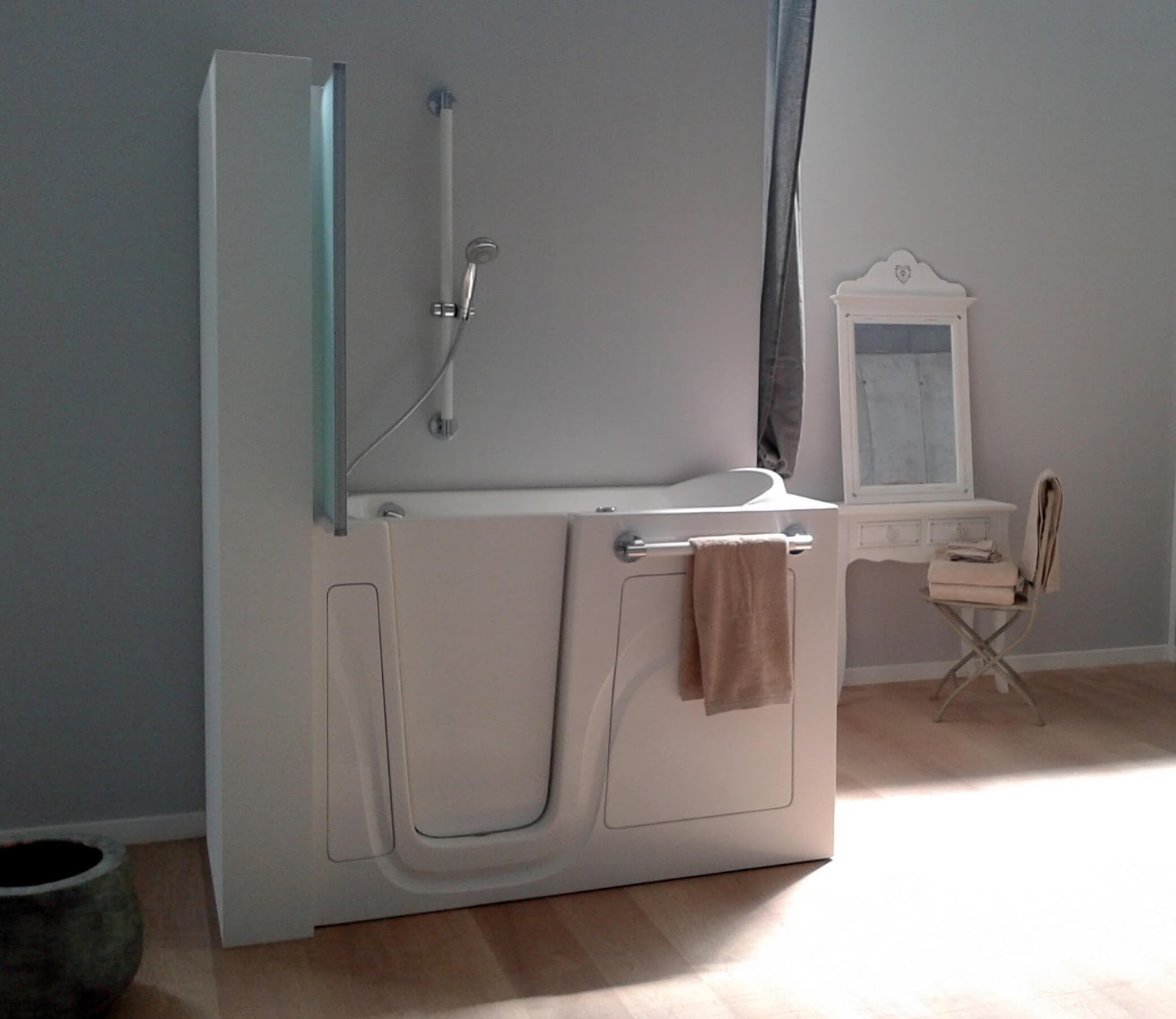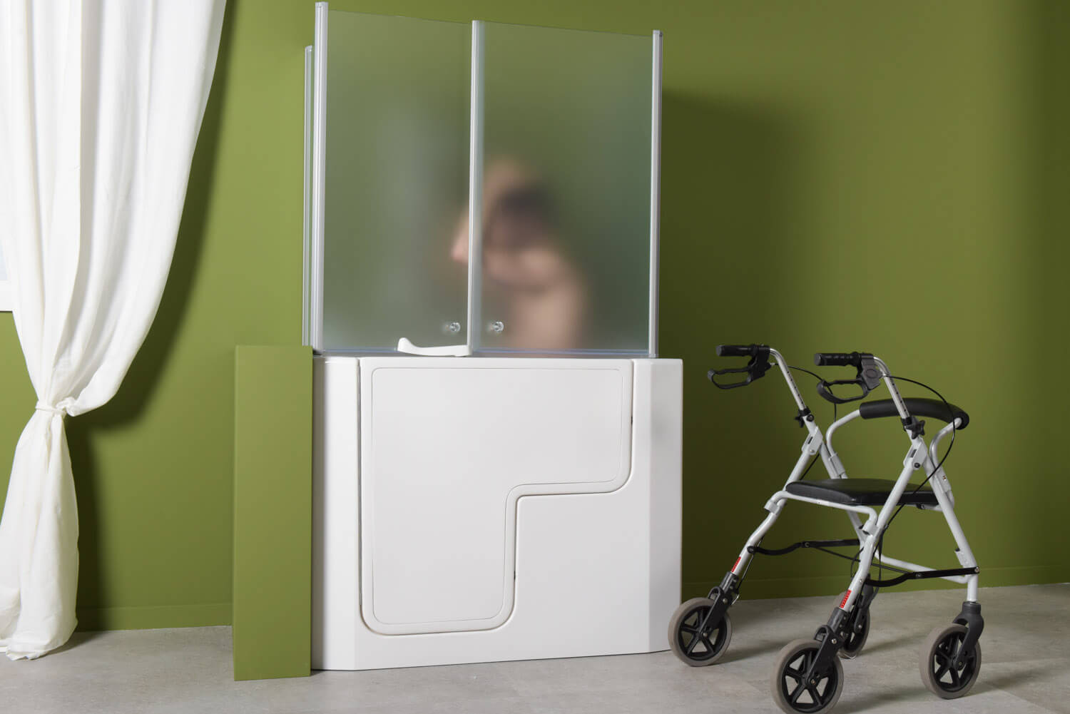 Bañera con puerta y ducha para ancianos. Con mampara. Modelo Bienestar