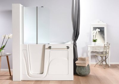 Bañera con puerta y ducha para personas con movilidad reducida. Con mampara. Modelo Confort